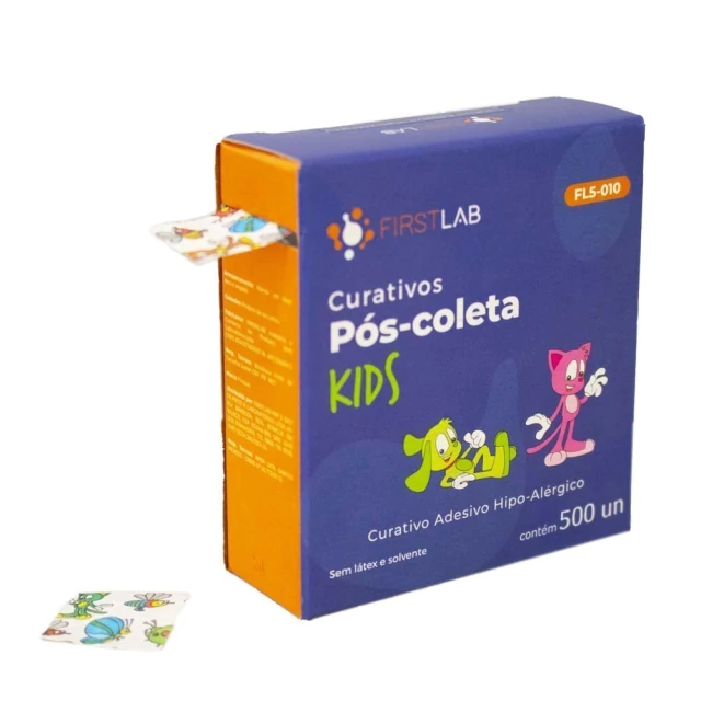 CURATIVO PÓS COLETA KIDS ADESIVO HIPOALÉRGICO. ROLO. 500 UN/CX